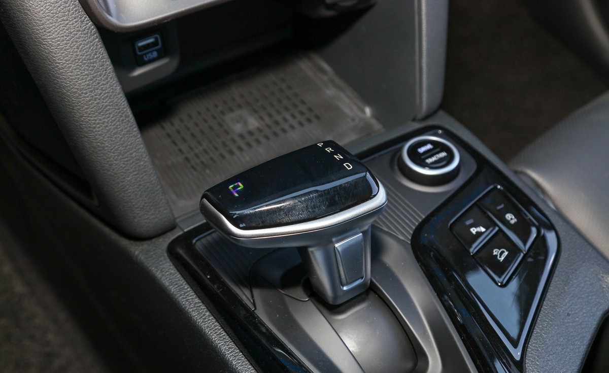 全新ix35车内最吸引买买君的还是档把区域的改变,原有的手刹全系改为了电子驻车,档把设计也从中间移至了偏驾驶员区域的一侧。而且档把也采用了全新设计,是一个外观十分像电子档把的造型,但实际操作起来其实依旧是一个机械直排档把;不过档把上方的面板区域支持显示当前档位对于很多新手司机还是十分友好的,算是一个贴心小设计。