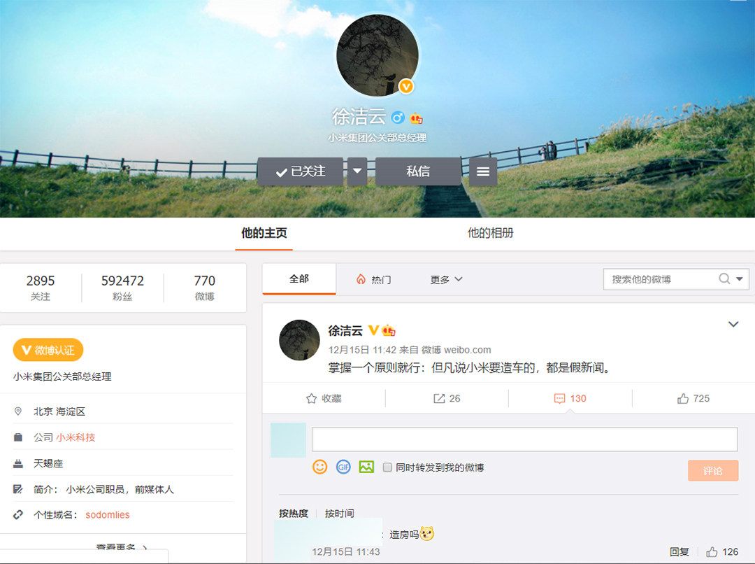 紧随其后小米集团公关总经理@徐洁云 发微博表态称:“掌握一个原则就行:但凡说小米要造车的,都是假新闻。”其实早在今年6月份,徐洁云就已经在微博说过小米不会造车。这么多官方的回应,铁定这次的“造车事件”是个谣言了。那究竟又是什么原因,让这次的网友们再次热血沸腾,导致谣言满天飞呢?