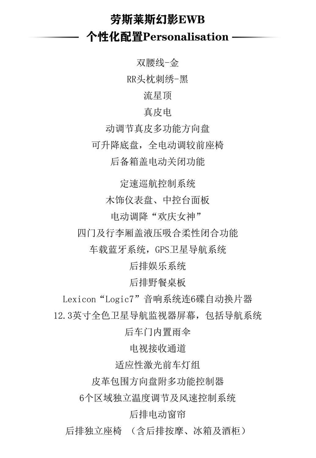 该款劳斯莱斯 幻影 配置表