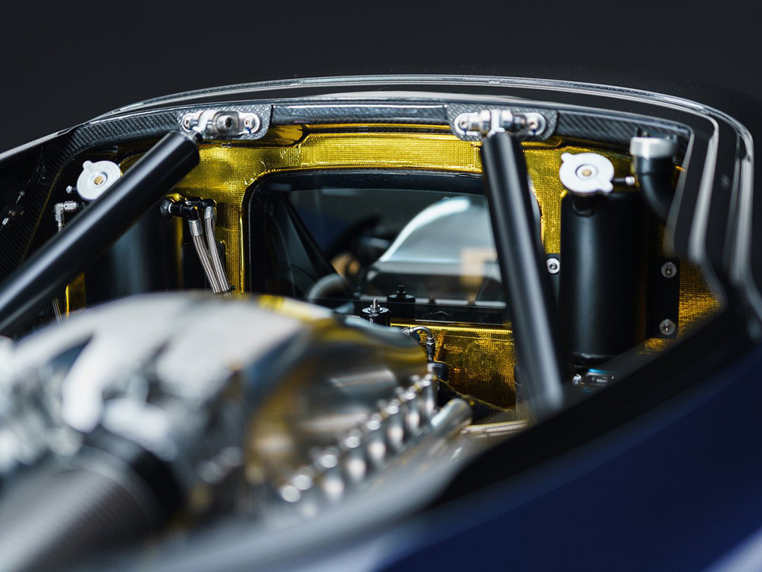 值得一提的是,这辆车售价210万美元,并限量24台,将于明年下半年开始交付,交付前官方还会对车辆进行最后的调整。从图片中可以发现,为了隔热,Hennessey还在机舱内贴上了金色的隔热层,整体效果非常引人注目。