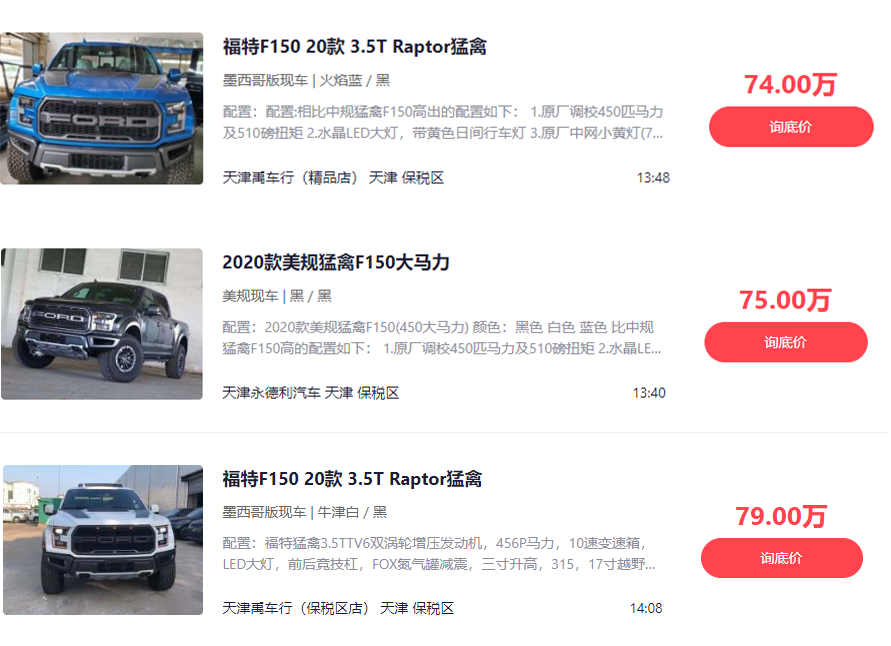 参考目前国内福特猛禽平行进口渠道的指导售价,根据车型配置版本不同,价格在70-80万之间。当然,还未包括后续的各种关税以及经销商加装配置的费用。依据这种种价格信息,有理由相信未来福特F-150 Tremor进军国内皮卡市场,身段仍处于大几十万的级别车型。