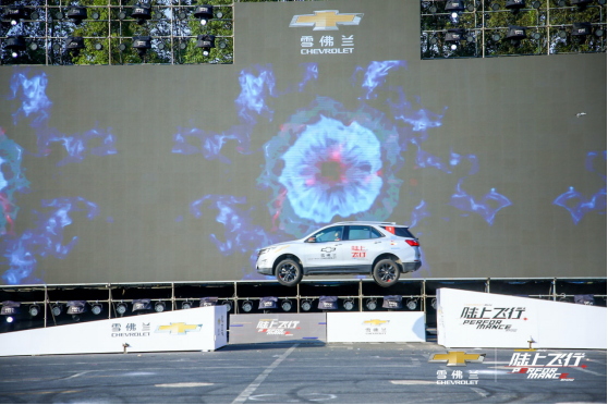 除了实力炫技,雪佛兰还为现场观众带来了满满干货,比如:高速爆胎。在场上预置了破胎器后,一台创界从上方高速驶过。创界并没有因为失去抓地力而侧滑失控,而是继续保持方向平稳前行。随后更以两轮侧开再次进入舞台,完美考验了车辆稳定性与车手平衡的极限。得益于创界领先的智驱科技、稳定扎实的底盘系统、全框式副车架、灵敏精准的转向系统等设计全面提升动力性和稳定性。无论是极限驾驶表演还是日常路况使用都能带来优异的驾驶感受,令SUV的漂移表演也可以酷到极致!