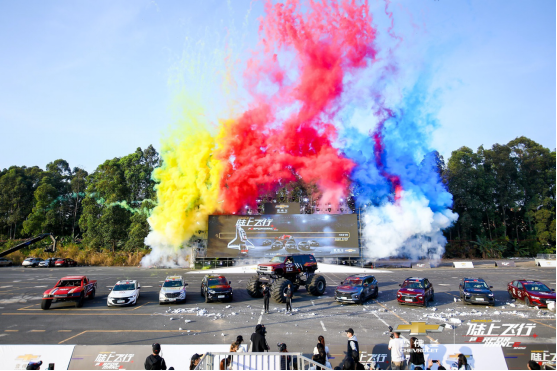 在引擎嘶吼声的相伴下,紧随着雪佛兰皮卡双子星索罗德与库罗德,雪佛兰家族旗下的高端大7座全境SUV雪佛兰开拓者、9AT中级SUV探界者、精悍新锐SUV创界、智联驾趣SUV新一代创酷以及9AT科技旗舰迈锐宝XL、时尚运动座驾科鲁泽,在全场观众的惊叹声中完成了多项硬核表演,拉开了2020雪佛兰SUV陆上飞行秀东莞站的序幕。