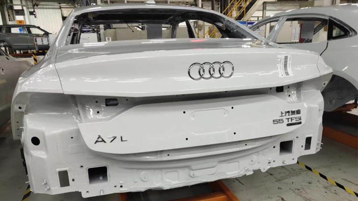 动力方面,现款A7基于奥迪最新的MLB Evo平台打造而来,并搭载了2.0T和3.0T两种动力总成。而此次白车身的右侧也向外界展示了55TFSI和quattro的标识,这意味着未来国产的A7L将会提供3.0T的动力总成,最大功率340马力,峰值扭矩500牛·米,传动匹配7挡双离合变速箱和quattro四驱系统。