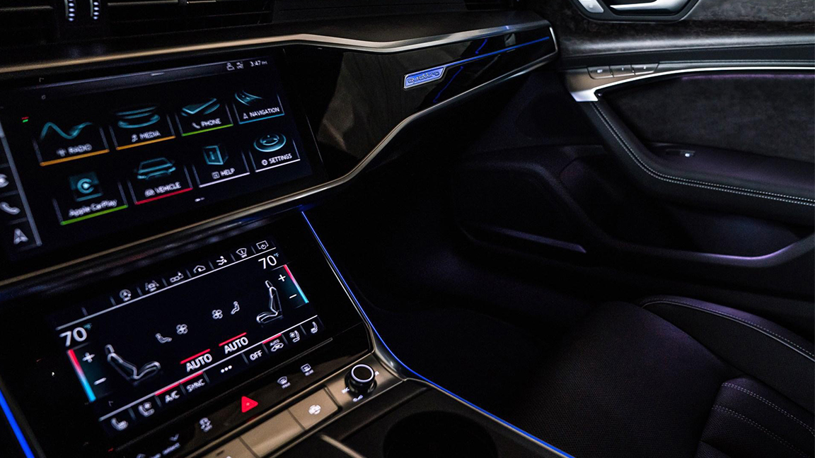 这一届的奥迪新车可谓在内饰上展现出极强的科技感,主要功臣就是中控上下双屏的设计,另外中控屏和空调控制面板在操作时均有反馈力,以此弥补了相对于物理按键在盲操方面的不足。