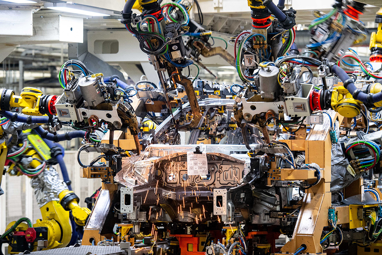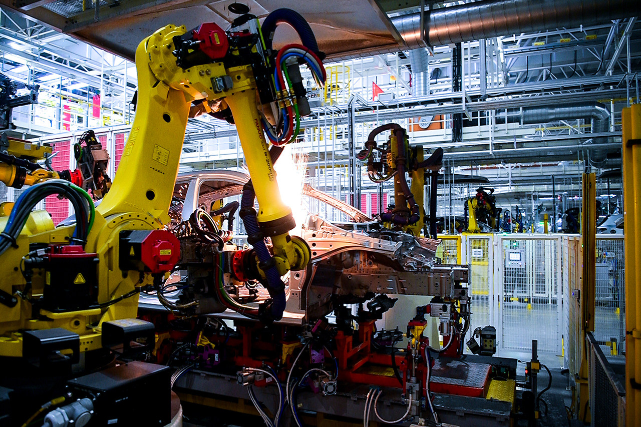 工厂内广泛应用数控机床、六轴机器人(机械手)、自动化立体仓库及AGV等12项先进技术,关键核心工艺覆盖率80%,全面提升智能制造水平:车身车间有511台机器人、4套在线测量系统、3套激光焊设备,自动化率可达99.8%。