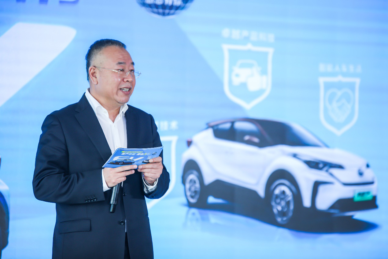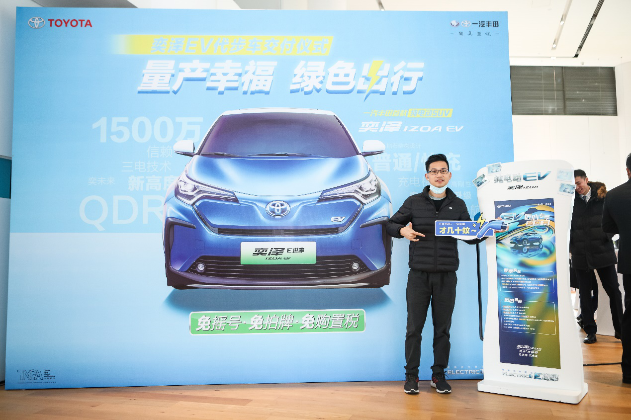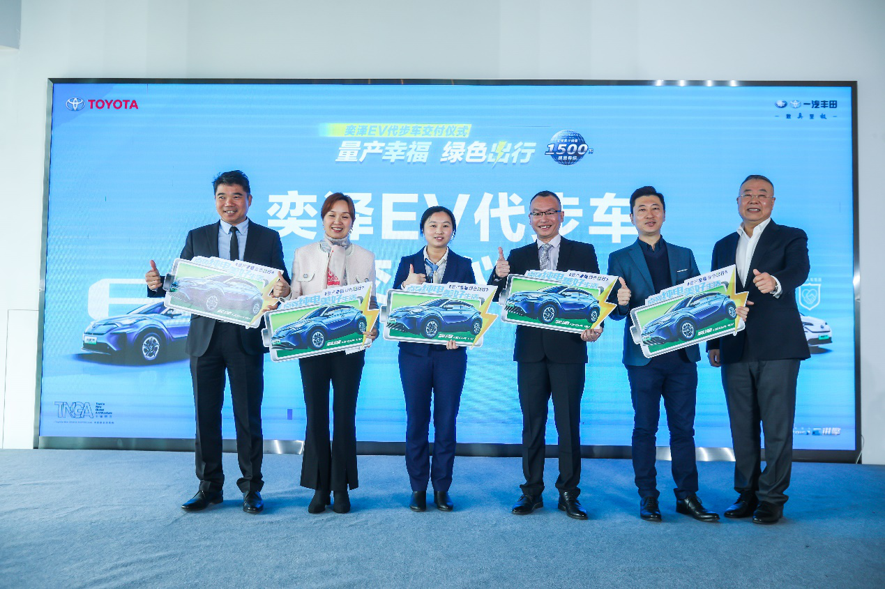 (一汽丰田汽车销售有限公司副总经理刘振国将奕泽E进擎交付给经销商代表)
