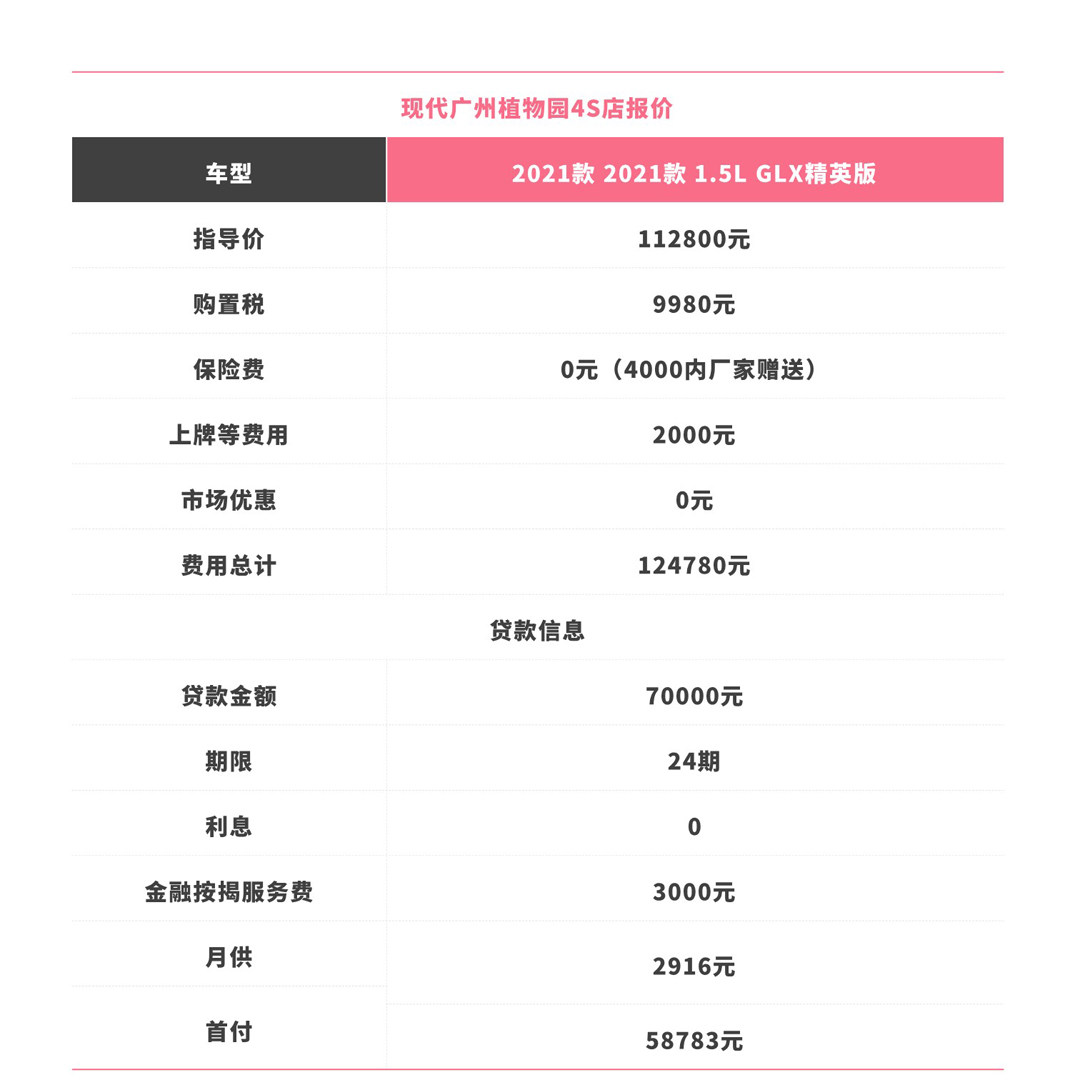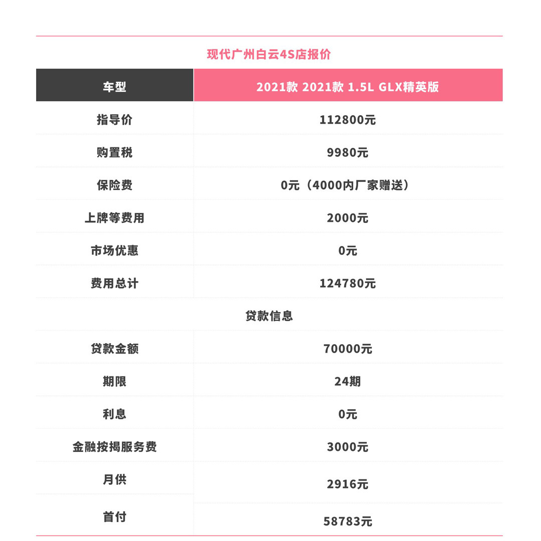 贷款方面,现代官方都提供2年免息贷7万的优惠政策,以1.5L精英版来计算,贷7万,手续费收3000元,首付5.8万,月供2916元。