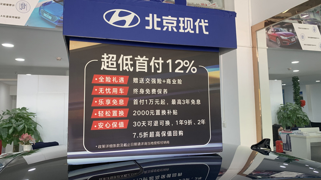 在第一间“东圃店”里,笔者以1.5L次低配精英版作为心水车型。通过计算,除了车辆价格11.28万、购置税9983元以外,还需要收取3000元的上牌费用,总价约为12.57万元;如果做按揭,目前现代有一个贷款优惠政策:贷7万,2年免息,同样收取手续费3000,首付大约需要5.8万元,月供2916元。