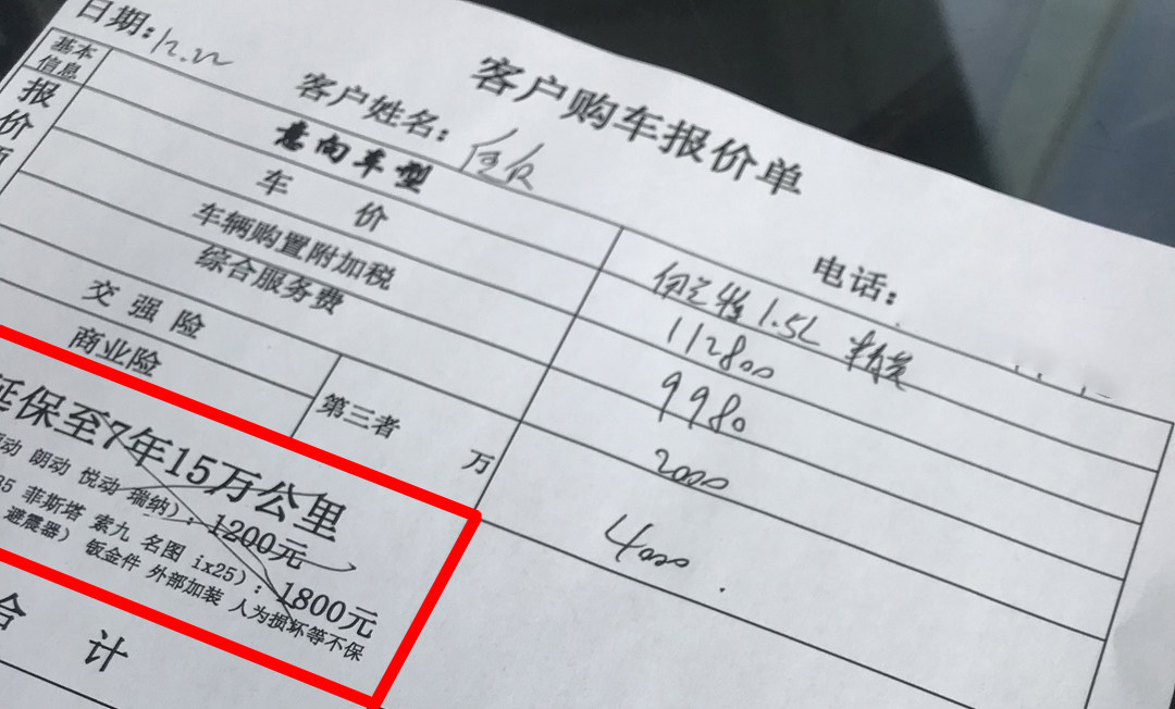 此外,其中一间店提供1200元的延保至7年/15万公里的服务,如果希望车辆更有保障,并且行驶里程较长的用户,可以选择该选装包,毕竟在后续使用过程中出现质量问题,都可以到4S店免费解决,当然,人为损坏不在此范围之内。