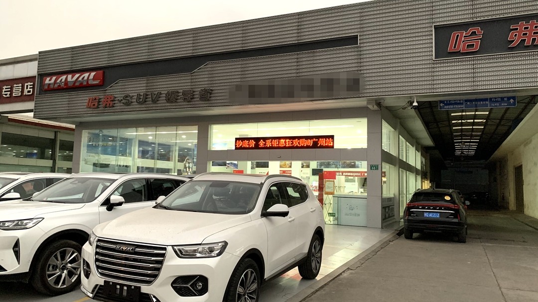 首先探访的是天河哈弗4S店,地址位于黄埔大道,店面规模中规中矩。尽管是工作日,但是门口依旧停满了客户的车与新车,车位较为紧张,哈弗车型热销程度可见一斑。店内布局较为整洁合理,前台询问了编者想了解的车型以后,马上安排了一位销售进行接待。