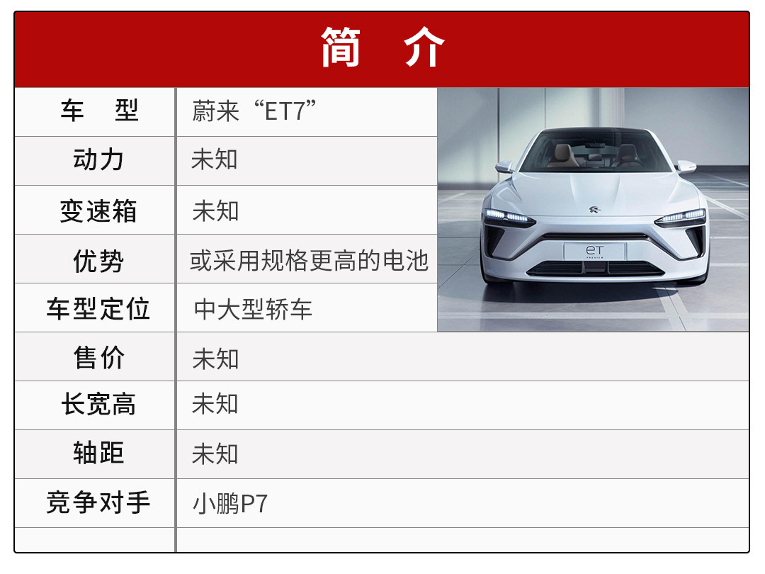 从蔚来ES8、ES6到EC6,蔚来在SUV车型的布局基本完善,接下来便是轿车阵营的布局了。而在即将举行的NIO Day活动上,蔚来除了发布150kWh电池等之外,还会发布“ET7”这一款重磅轿车。不过目前新车相关的信息并不多,除了这个可能被命名为“ET7”的名字之外,剩下的便是公诸于众的外观了。参考此前亮相的蔚来ET Preview轿车,“ET7”整体设计延续了蔚来的家族式设计风格,至于内饰和动力等,相信也会延续ES6的传统。它的出现,势必会和小鹏P7进行正面竞争,强强对抗倒是挺有意思的。