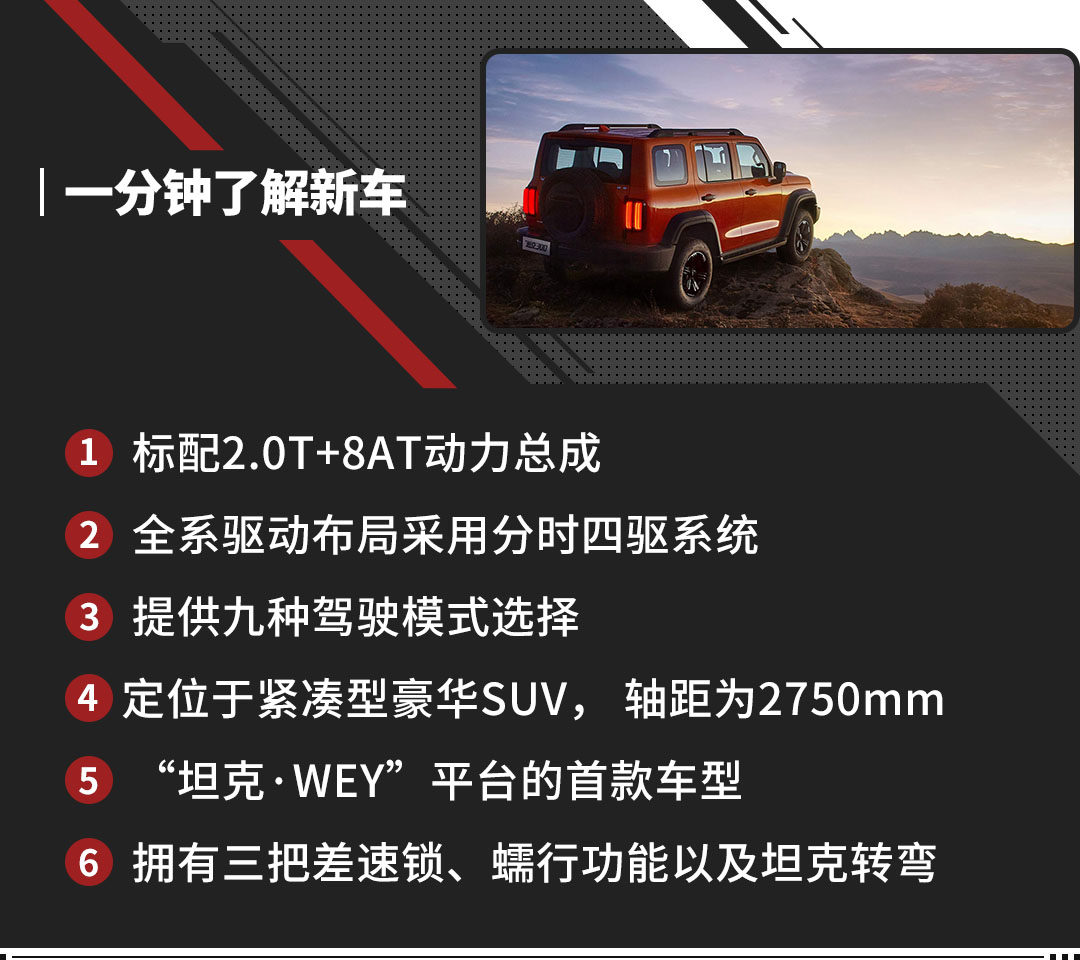167kW的纵置2.0T+ZF的8AT,以这个价位而言,绝对的主流。最多九种模式的全地形系统,分时四驱、前后锁、蠕行功能、坦克调头等功能都在。换句话说,你出去玩常用到的越野功能它基本上也都有。要知道,一些老牌的硬派越野车,这些东西你如果买低配它是没有的。