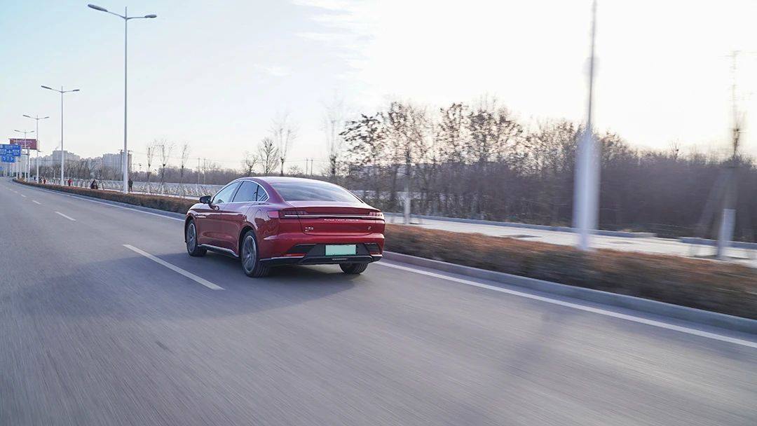 偏软的前麦弗逊式+后多连杆独立悬架调校,带给旅途更加舒适的驾乘体验,再加上0.233Cd的超低风阻以及低重心的电池布局,在高速行驶时整车姿态更稳,即使遇到轻微的侧风,汉EV的左右摆动姿态也微乎其微。