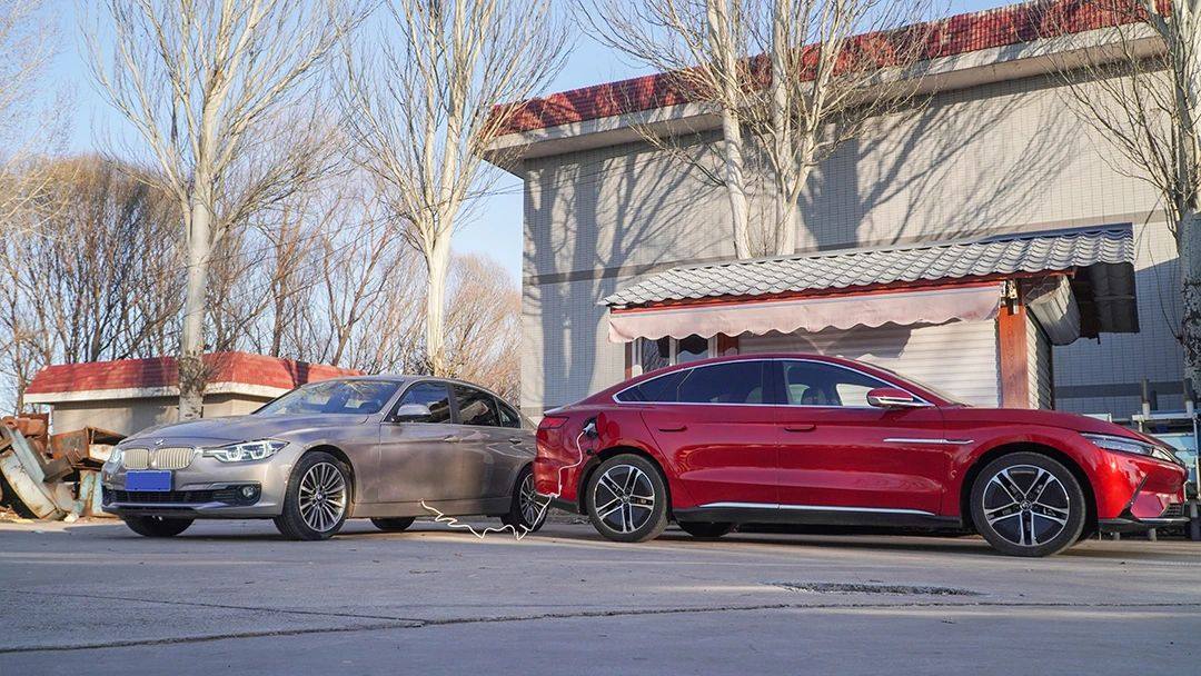 当天一早,教授就拿着车钥匙对比亚迪汉EV上下打量了一番,考虑到比亚迪汉EV和宝马3系都在露天室外停放了一夜,于是教授突发奇想,比拼两车空调制热速度和保温性。