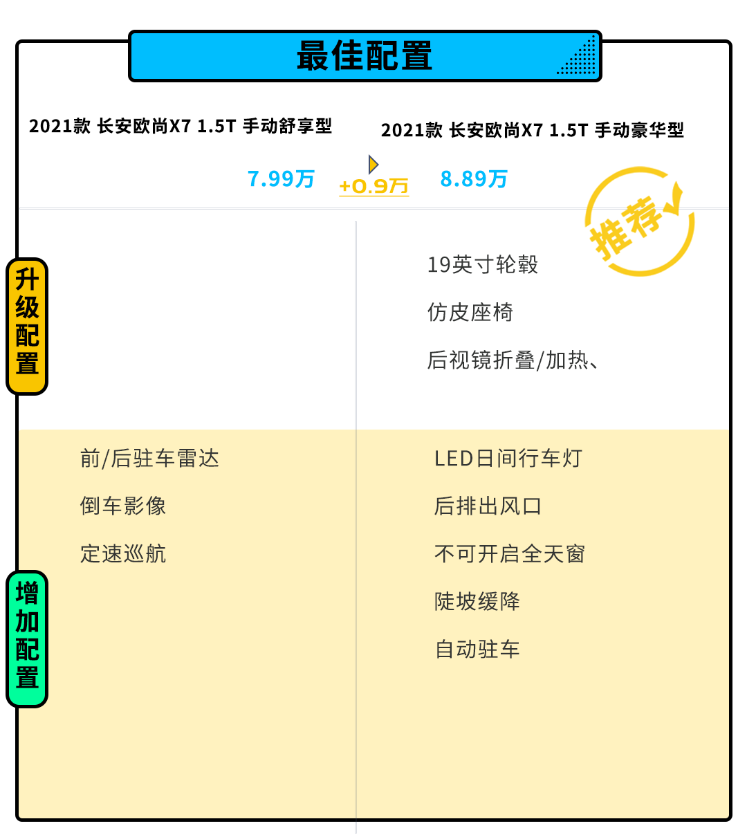 像长安欧尚X7与瑞虎8这样的车型,其销量表现主要下沉至三四线消费城市。对于三四线城市的消费者来说,国产车型的性价比是最主要的优势之一。而考虑到三四线的城市用车习惯,买买君推荐长安欧尚X7手动豪华型。