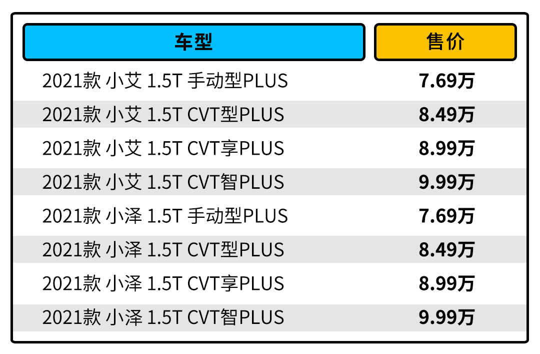 新车共根据两种动力不同,各推出了8款车型配置,并且提供小艾、小泽两款外观车型可选,这一点可以满足年轻用户与家庭用户的购车需求,相对来说考虑得还是颇为周到的。