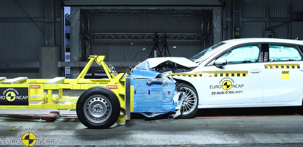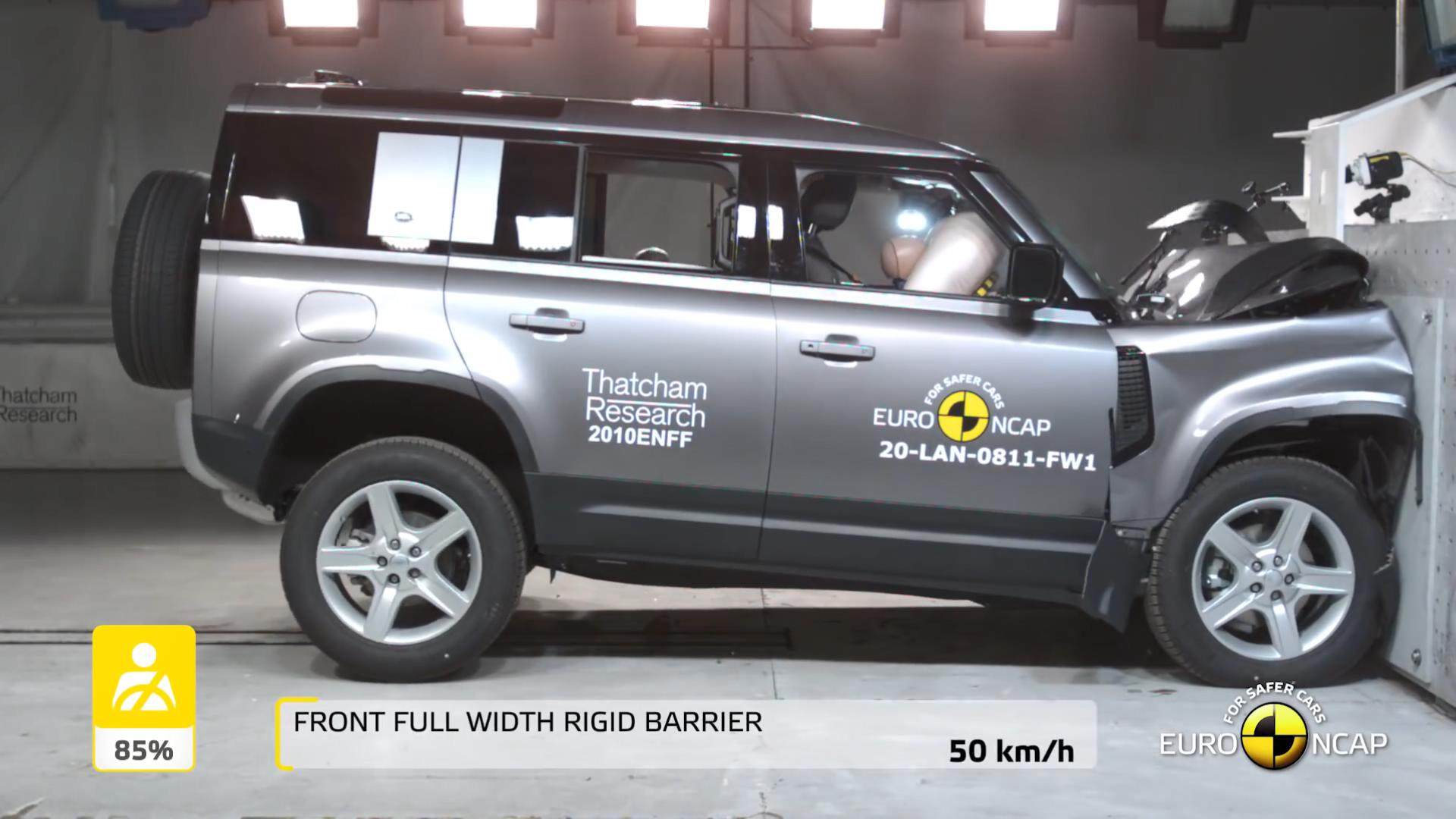 至于在正面100%的碰撞当中,我们可以看到引擎盖出现了明显的弯曲,但除此之外并没有其他致命的伤害,加上安全气囊全部爆出,假人并没有受到伤害,因此获得了非常不错的评分。
