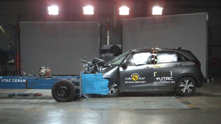 当然这并不只是碰撞豪华车辆,像我们经常会接触到的飞度也需要经过碰撞。在正面碰撞当中,飞度的全部气囊都及时爆出,而除了车头之外其他地方均没有伤害,更没有出现不少人担心的A柱问题,从而可见还是可以放心的。