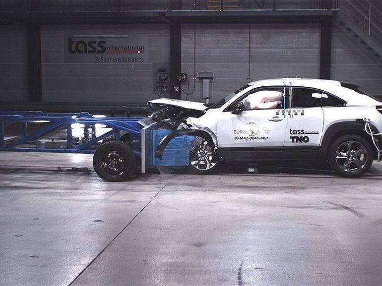 如果你觉得一款车型不够,还有来自马自达的CX-30,在同样的正面碰撞测试当中,该车也是有着非常不错的表现。从碰撞当中可以看到,主要损失只是在引擎的位置,相比起飞度甚至没有出现玻璃破裂的问题,而A柱问题更是不存在。