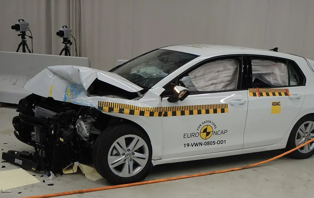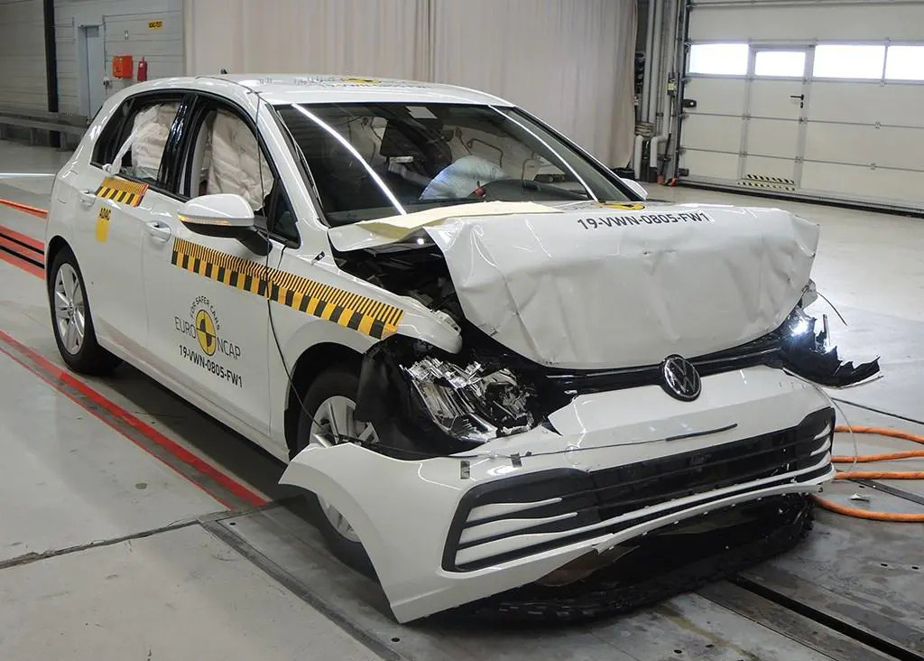 看完日系车型,最后来看看不少人更喜爱的德系车型,在国内上市没多久的全新高尔夫此前也参加了碰撞测试。我们可以看到,该车经过正面碰撞测试之后,前脸虽然已经属于面目全非了,但是其他地方来说还是相对完好,可见德系车型的安全性还是比较不错的。