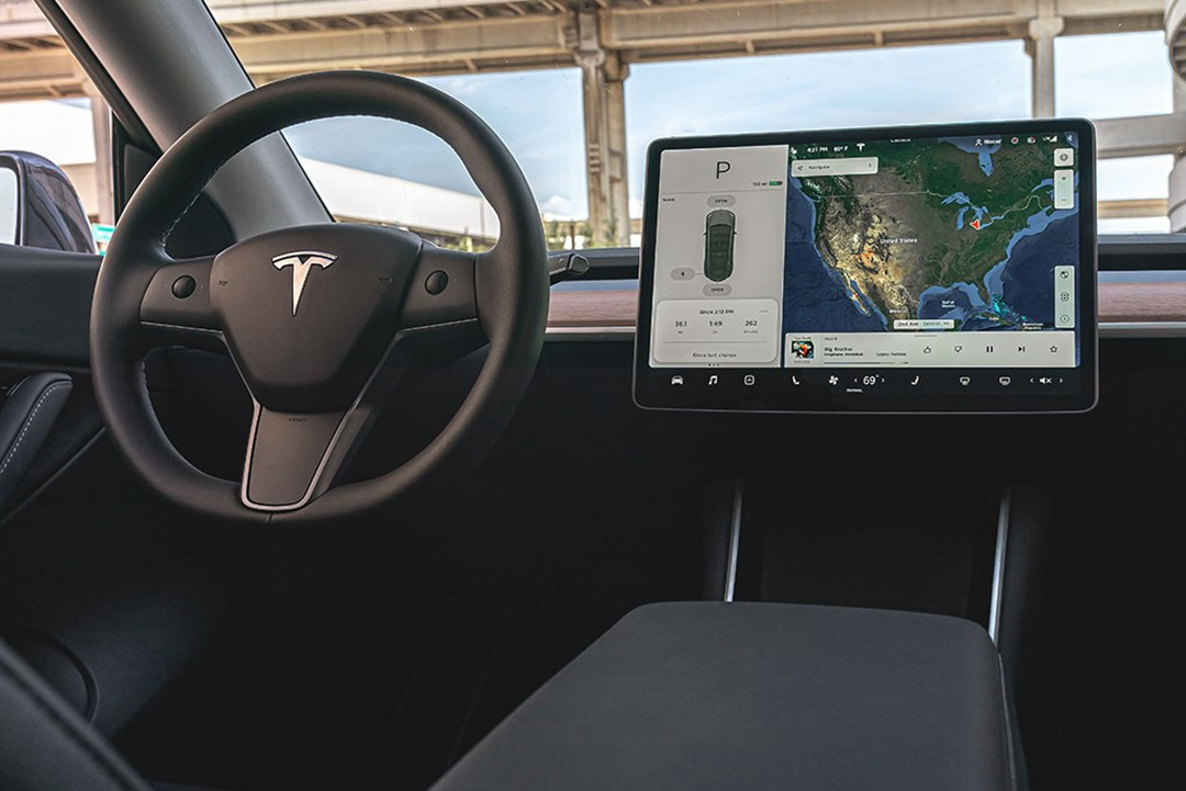 如果说外观设计上,其高度差异上能看出Model Y与Model 3有所不同,那么进入车内你则会彻底傻傻分不清楚。Model Y沿用了Model 3上极其简约的内饰设计风格,除了集成了仪表盘功能的中控大屏以及多功能方向盘以外,便没有实体按键供驾驶员操作。在Model Y面前,相信没有SUV敢说自己的内饰设计足够“简约”。内饰配色方面,这次特斯拉仅提供黑色这一单一配色,倘若有着其他配色需求的朋友可能还需耐心等等。