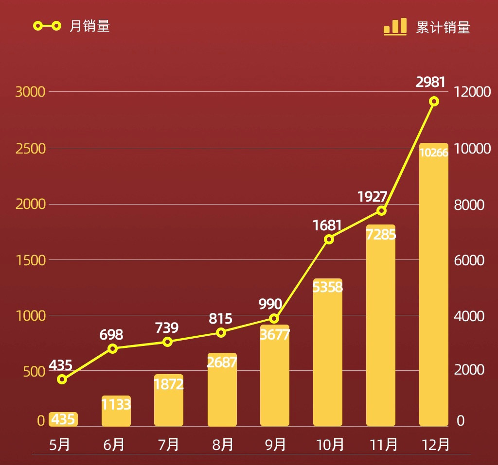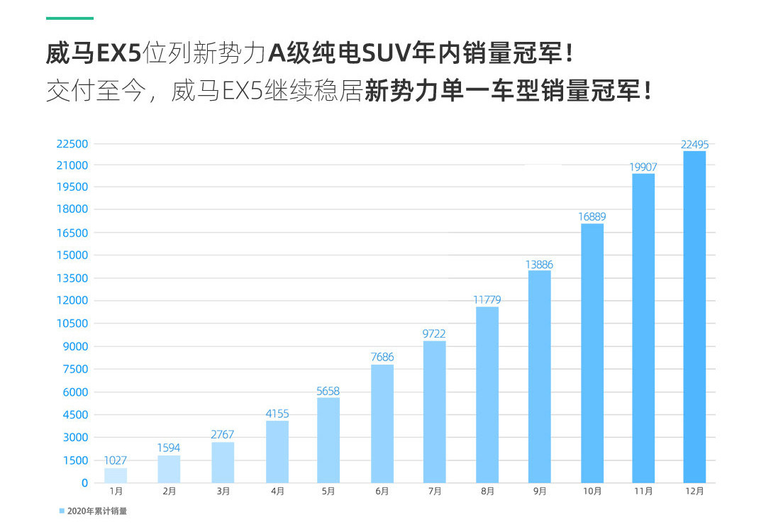 在1月4日,威马汽车公布了其第四季度以及全年的销量成绩,其中第四季度累计销量达8,609辆,创单季销量历史新高。而全年累计销量达22495辆,同比增长33.3%,相比于前面三款销量实现翻倍的车型,威马在增长上稍逊一筹,排名比起去年的第二下滑了两位。