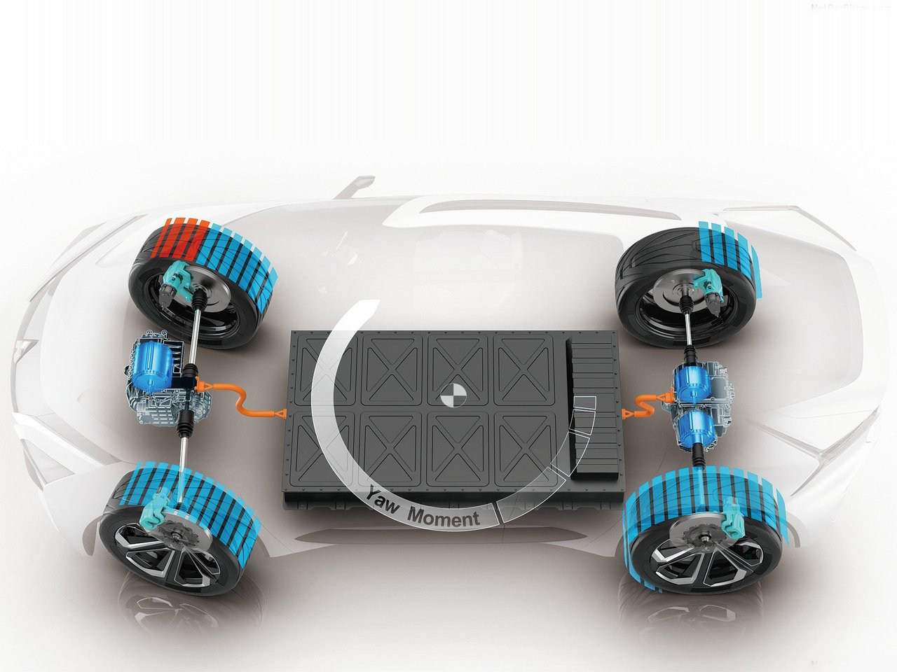 动力方面,e-EVOLUTIO采用三电机四轮驱动系统,听着好拗口,其实前轴配备有一个电动机,而后轮则使用Dual-Motor AYC系统组成的两台电动机驱动。