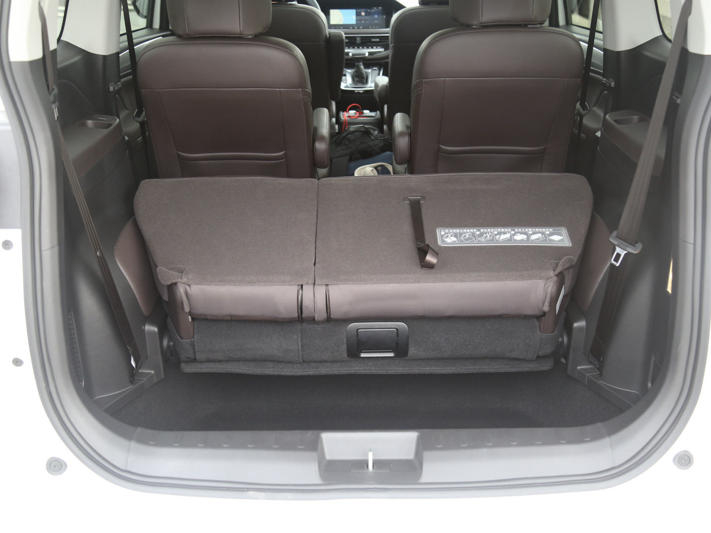 空间利用方面,能透过一些细节说明广汽是真的有用心的去挖掘用户的对于空间的需求,例如,借鉴了后备厢的向下的“掏空”处理以腾出更多的纵向空间,并且第三排座椅还能够向后翻折能够得到一个全平的空间进行收纳,这种“偷空”处理方面可以说是把空间利用最大化。