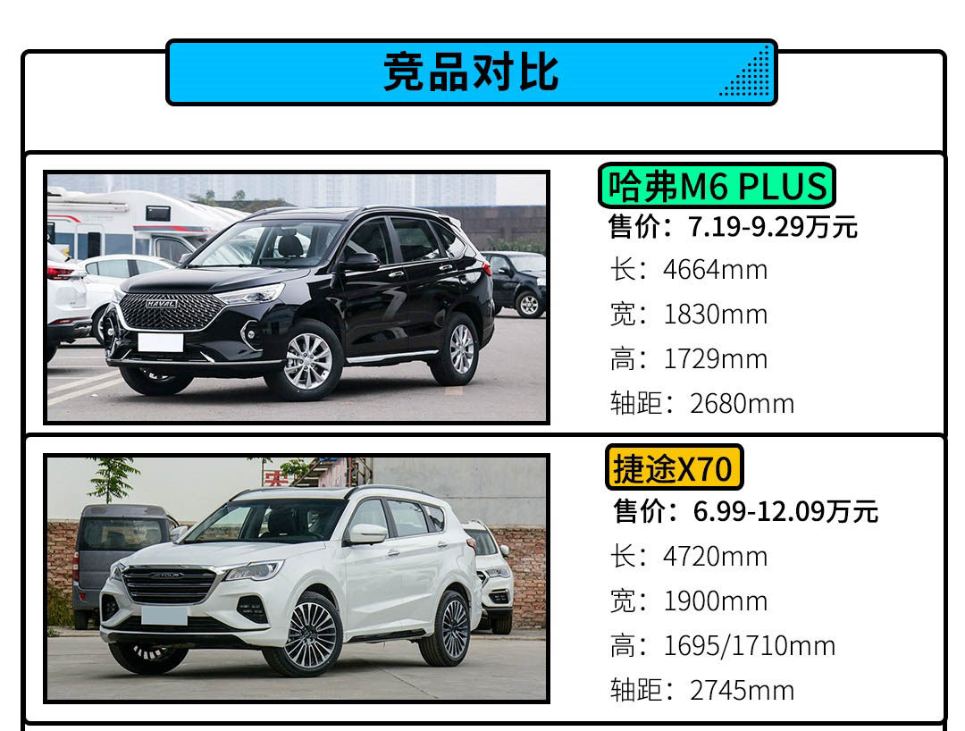 相信关注M6 PLUS的消费者同样还在关注捷途X70这款车,在小编看来这是很正常的事情,毕竟两款车都算是那种物美价廉的SUV。对比可以发现,首先是价格方面,捷途X70的起售价更低,仅需6.99万元,其次是车身尺寸也更大。