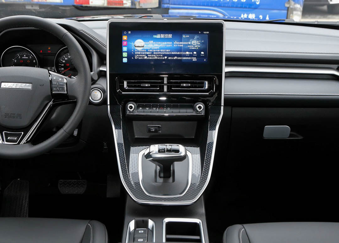 其实M6的那套内饰并不算过时,但在M6 PLUS上哈弗还是进行了明显的改动。虽然中控台依然是对称式的设计,但用料和线条都有了明显的变化,例如空调出风口、镀铬条饰条等元素变得更加精致,不过方向盘造型却没变。