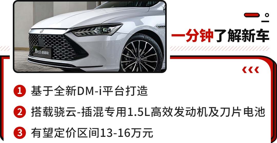 秦PLUS是比亚迪推出的又一款新车,从秦到秦Pro再到秦PLUS,进一步丰富了自身品牌在紧凑型车的细分市场。基于全新DM-i平台加上骁云-插混专用的1.5L高效发动机以及刀片电池,配合更高颜值的外观内饰设计,都让比亚迪有着超越合资车的资本。特别是DM-i超级混动技术更是亮点,高达43%热效率的1.5L发动机,具备阿特金森循环、15.5高压缩比、EGR废气再循环系统以及分体冷却等技术,在不使用电力驱动的情况下,油耗为3.8L/100km。