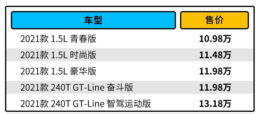 在小编看来,最值得购买的还是指导价为11.48万元的1.5L时尚版,因为最低配的青春版车型已经标配了LED大灯、倒车影像和雷达、驾驶模式切换、自动驻车、电动天窗、铝合金轮毂、多功能方向盘、6喇叭扬声器、自动大灯、车窗一键升降等配置。