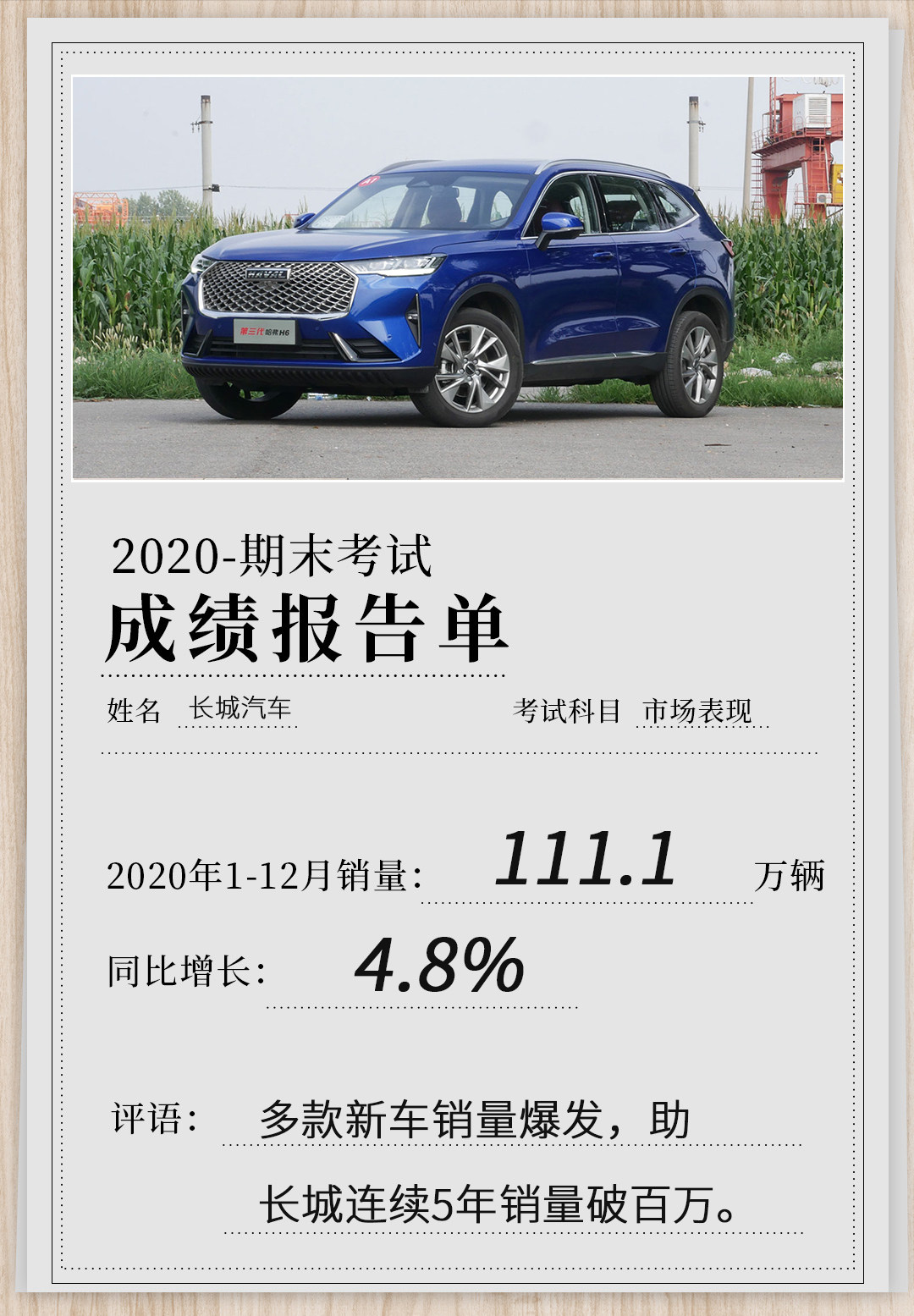 虽然1月8号才发布的销量数据显得姗姗来迟,但好事不怕晚,长城汽车迟来的战报也足够精彩。根据其公布的数据,2020年长城汽车全年销量为1111598辆,同比增长4.8%,连续5年突破100万辆大关,并且超额完成102万辆的年度目标,目标完成率达109%。