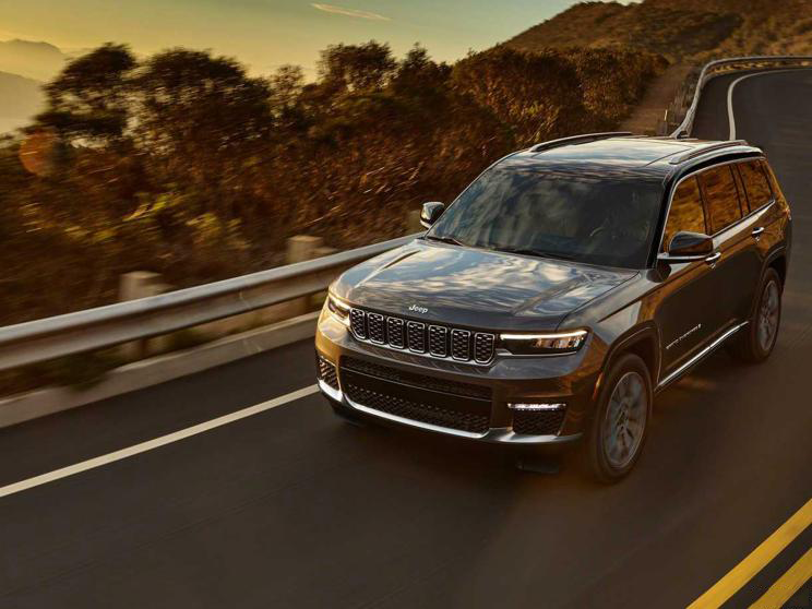 即便是远眺望过去,依然能看得出这是一台JEEP车型,前脸依然采用经典的7孔式格栅设计。大切诺基L在外观造型设计上高度还原了Grand Wagoneer概念车的设计理念,在整体前脸氛围营造上多了些精致豪华的“味道”。