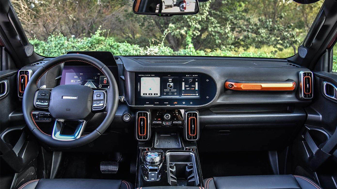内饰方面,新增2.0T四驱车型同样与1.5T车型大体相同,车内与外观一样采用了十分个性的设计,例如独特的撞色配色和“D”设计元素(对应大狗Dog的首字母“D”)等。而哈弗大狗作为一款面向年轻群体的车型,其在科技感方面也有着不错的表现,包括双层全液晶仪表、大尺寸中控屏和旋钮式换挡机构等。