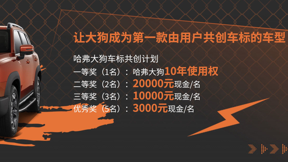 大狗可以说是一款创作自由度极高的车型,而在这次发布会上哈弗继续为广大网友提供创作的机会,即让用户为大狗设计专属车标,值得一提,获得第1名的将拥有10年哈弗大狗使用权,而2-5名则有现金奖励,不得不说这波又成功引起了各大网友的关注。那么大家都很期待的2.0T四驱版车型相比于1.5T两驱版本,究竟有哪些值得关注的地方?接着往下看。