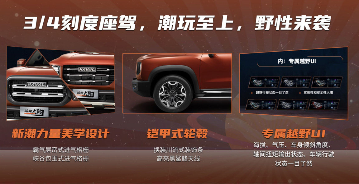 1月11日晚,哈弗大狗2.0T车型正式上市,新车仅推出一款配置版本,名为“中华田园犬版”,指导价为15.59万元。