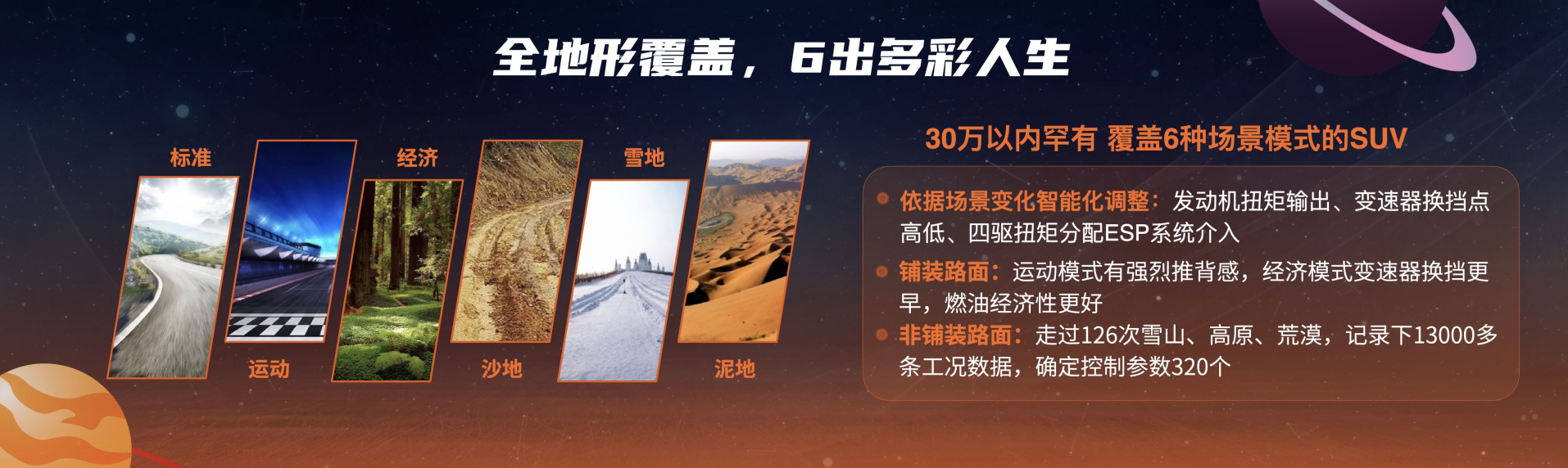 另外,新车还拥有六种全地形驾驶模式,包括标准模式/运动模式/泥地模式/沙地模式/雪地模式/经济模式。在不同场景下,车辆控制系统可针对性地转换发动机、变速器和四驱系统控制逻辑,自动适应不同路面。