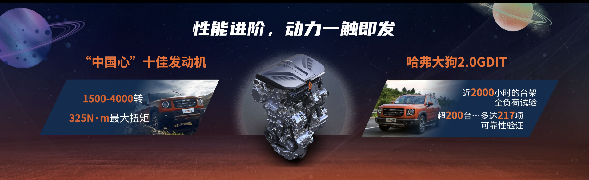 动力部分是本次新增车型的最大看点,哈弗大狗中华田园犬版搭载了一款2.0T发动机,其最大功率为204马力,最大扭矩为325牛·米,发动机热效率高达38.3%。而传动方面匹配7挡双离合变速箱,另外还提供了博格华纳第五代Haldex四驱系统和后桥牙嵌式差速器。