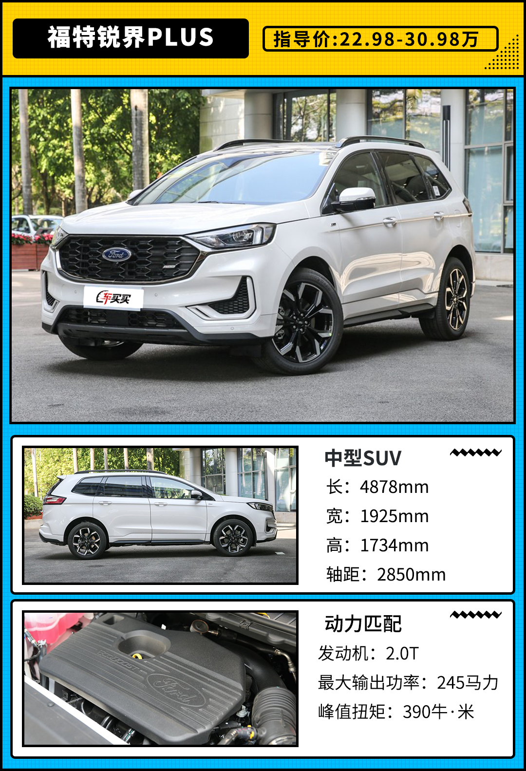 搭载自家EcoBoost 2.0T发动机+8AT变速箱的动力组合,7.5秒实现百公里时速破百,与此同时官方所公布的百公里油耗表现在7.3-7.6L,兼顾日常动力输出以及燃油经济的需求。