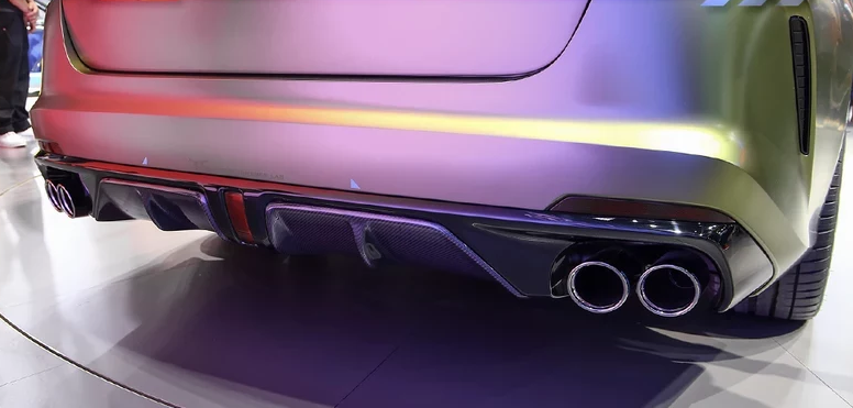而蓝色刹车卡钳、碳陶瓷通风刹车盘以及米其林PS4运动轮胎的运用,则表明这是一台有着不错性能的车。为了彰显其运动的属性,新车还采用了夸张的双边共四出排气口设计。