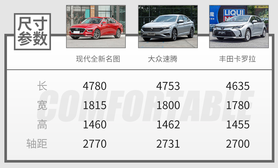 不过我们能发现,虽然全新名图的定位是中型轿车,但纵观13-17万元区间的合资中型轿车,基本都是迈锐宝XL、标致508、斯柯达速派这一级别的车型,而它们在尺寸上都比全新名图要更大。所以说,全新名图即使被称为中型轿车,然而其最主要的竞争目标依然是是速腾、卡罗拉、轩逸等这类主流的合资紧凑型车,毕竟价格就摆在这,而对比之下,名图无疑能在尺寸和空间两方面占优,大气,是中国专属车型的必要要素之一。