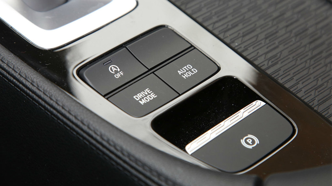 而挡把区域后方的行车功能就没有太大区别,例如提供了电子手刹、自动驻车和驾驶模式切换按键等。