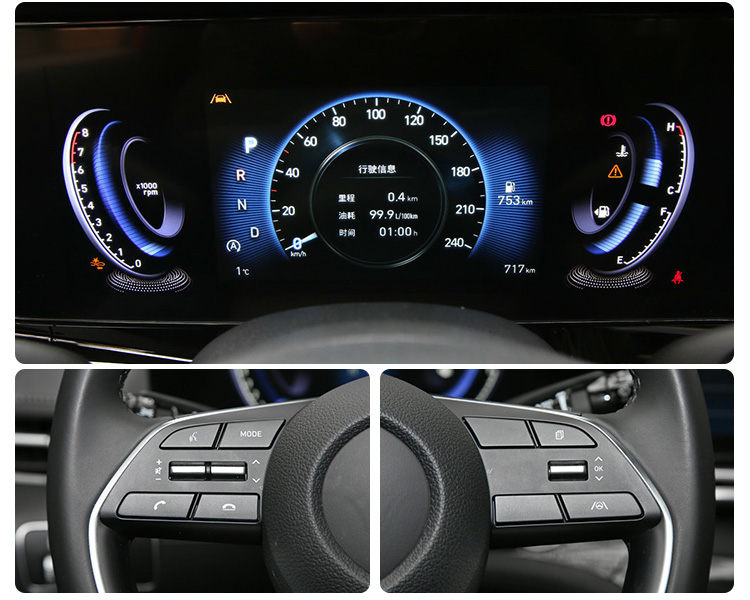 在新车所配备的大联屏里,12.3英寸全液晶仪表盘提供了不止一种的界面样式,其内部支持导航、行车状况、辅助驾驶和胎压监测等多种功能的投影,与之对应的操控按键则分别布局在方向盘的两侧。