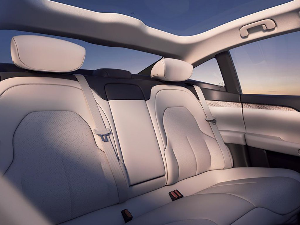 流线型的车身让蔚来ET7整车风阻系数低至0.23Cd,并配备智能空气悬挂,车辆可根据车辆行驶动态自行调节车身高度从而降低风阻系数和过滤路面颠簸。蔚来ET7车顶配备超大尺寸玻璃天窗,最大化提升驾乘人员在车内的视野环境,采用双层隔热玻璃,能够隔绝99.5%以上的紫外线。