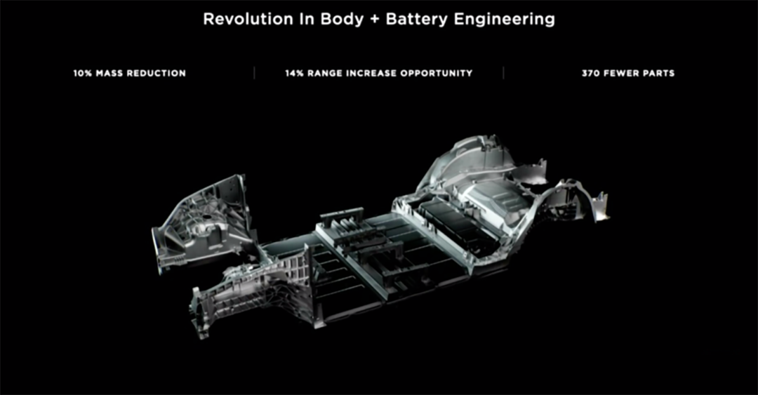 除了电芯本身的成本降低外,特斯拉还将对超级工厂的电芯生产线进行“扩容”, 新电池产线届时能够降低18%的成本。而通过将底盘结构进行重新设计,整个大电池模组和底盘结构件也将降低7%的成本。