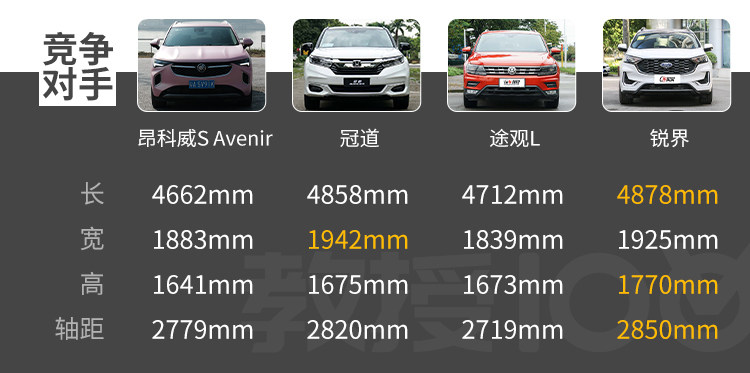 显然,昂科威S并非依靠主打大空间的车型,因此在外形尺寸方面与同级对手相比似乎并不占优。
