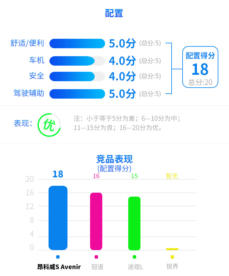 无论是造型设计还是做工用料,昂科威S Avenir都没有让人失望,保持着别克Avenir系列车型一贯的高水准,在合资中型SUV车型中也处于中上游水平。