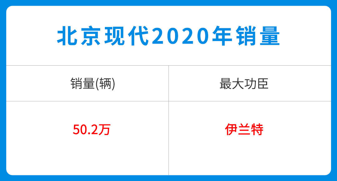 2020年有着新冠疫情作为拦路虎,各家车企都出现了不可避免的销量下滑,虽然北京现代没有完成原定的75万辆销量,但是北京现代展现出了很强的调控能力,最终依然取得了50.2万辆的销量成绩。